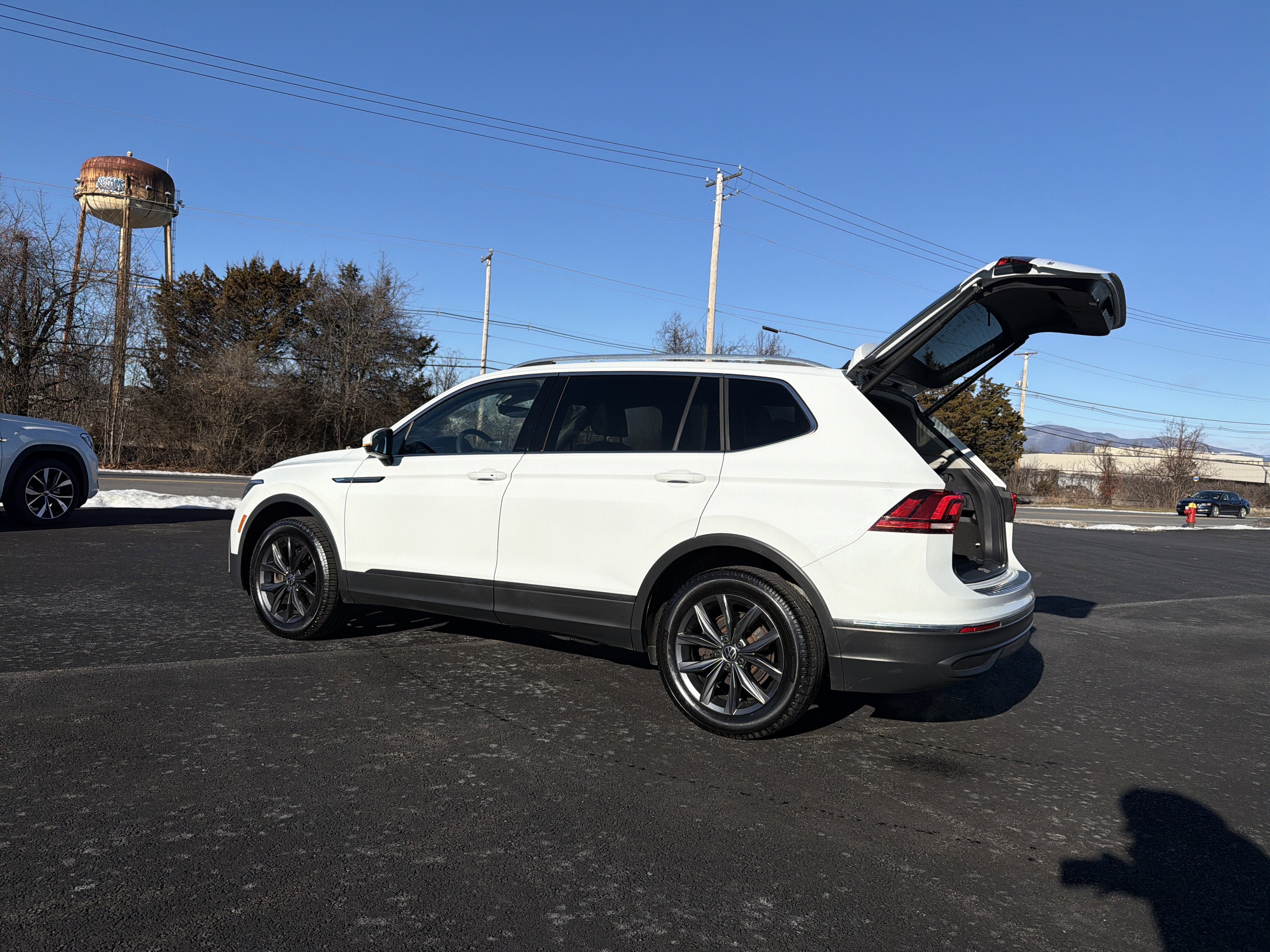 Romeo Volkswagen is proud to present this 2022 Volkswagen Tiguan with 3.33 Axle Ratio, 4-Wheel Disc Brakes, 4-Wheel Independent Suspension, 6 Speakers, ABS brakes, Air Conditioning, Alloy wheels, AM/FM radio: SiriusXM with 360L, Auto-dimming Rear-View mirror, Automatic temperature control, Brake assist, Bumpers: body-color, Compass, Delay-off headlights, Driver door bin, Driver vanity mirror, Dual front impact airbags, Dual front side impact airbags, Electronic Stability Control, Emergency communication system: Car-Net, Exterior Parking Camera Rear, Four wheel independent suspension, Front anti-roll bar, Front Bucket Seats, Front Center Armrest, Front dual zone A/C, Front reading lights, Fully automatic headlights, Heated door mirrors, Heated Front Comfort Seats, Heated front seats, Illuminated entry, Leather Shift Knob, Low tire pressure warning, Occupant sensing airbag, Outside temperature display, Overhead airbag, Overhead console, Panic alarm, Passenger door bin, Passenger vanity mirror, Perforated V-Tex Leatherette Seating Surfaces, Power door mirrors, Power driver seat, Power Liftgate, Power steering, Power windows, Radio data system, Radio: MIB3 Composition Media AM/FM/HD, Rain sensing wipers, Rear anti-roll bar, Rear reading lights, Rear seat center armrest, Rear window defroster, Rear window wiper, Remote keyless entry, Roof rack: rails only, Security system, Speed control, Speed-sensing steering, Split folding rear seat, Spoiler, Steering wheel mounted audio controls, Tachometer, Telescoping steering wheel, Tilt steering wheel, Traction control, Trip computer, Turn signal indicator mirrors, Variably intermittent wipers, and Wheels: 18 Dark Graphite 10-Spoke Alloy.