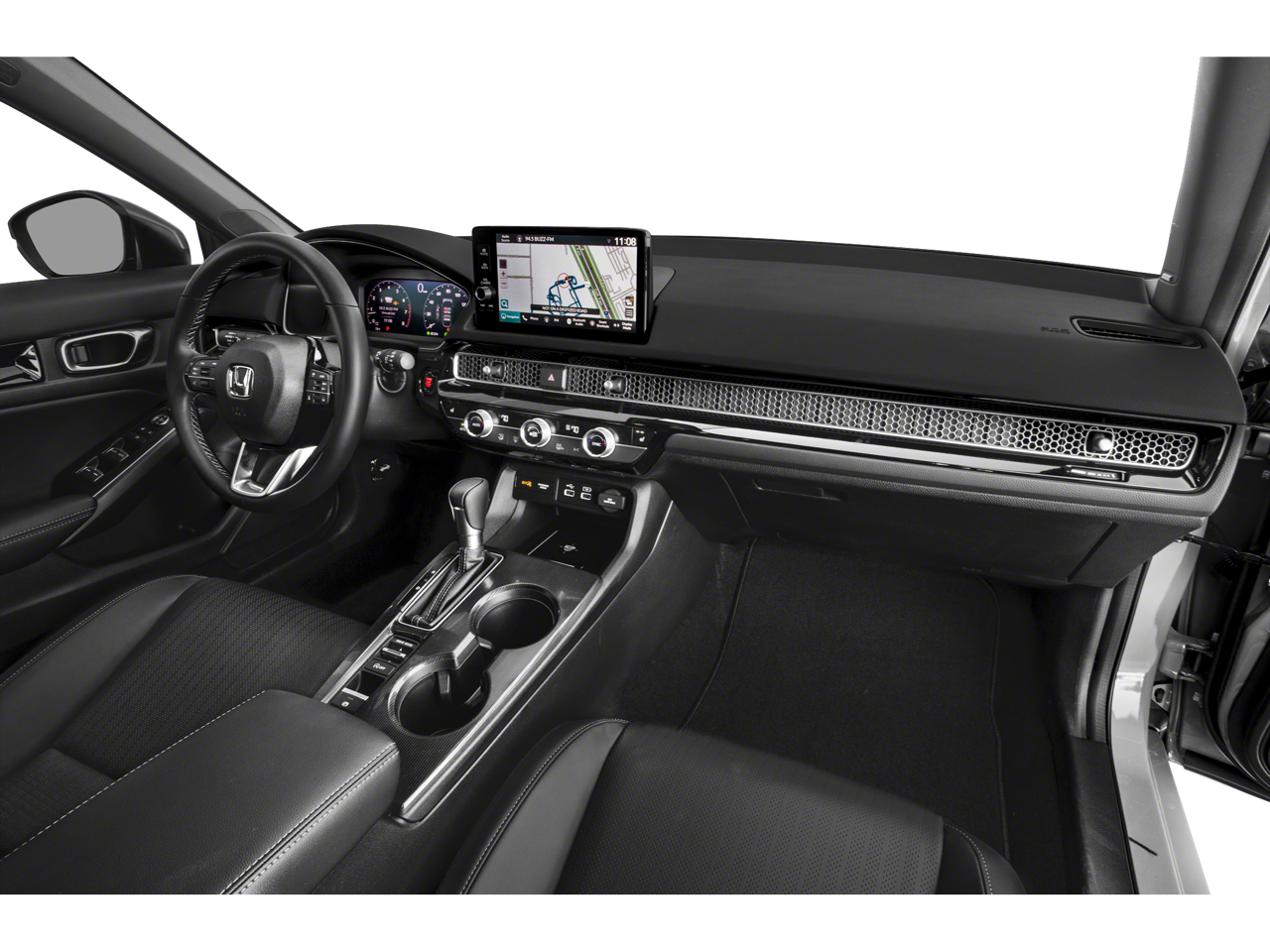 Romeo Volkswagen is proud to present this 2023 Honda Civic with 12 Speakers, 18 Alloy Wheels, 4-Wheel Disc Brakes, ABS brakes, Adaptive Cruise Control: Adaptive Cruise Control (ACC) with Low-Speed Follow, Air Conditioning, Alloy wheels, AM/FM radio: SiriusXM, Apple CarPlay/Android Auto, Auto High-beam Headlights, Auto-dimming Rear-View mirror, Automatic temperature control, Blind Spot Information (BSI) System warning, Bose Premium Audio System, Brake assist, Bumpers: body-color, Compass, Delay-off headlights, Driver door bin, Driver vanity mirror, Dual front impact airbags, Dual front side impact airbags, Electronic Stability Control, Emergency communication system: HondaLink, Exterior Parking Camera Rear, Four wheel independent suspension, Front anti-roll bar, Front Bucket Seats, Front Center Armrest, Front dual zone A/C, Front fog lights, Front reading lights, Fully automatic headlights, Garage door transmitter: HomeLink, Heated door mirrors, Heated Front Bucket Seats, Heated front seats, Illuminated entry, Knee airbag, Lane departure: Lane Keeping Assist System (LKAS) active, Leather Shift Knob, Leather steering wheel, Leather-Trimmed Seating Surfaces, Low tire pressure warning, Navigation system: Honda Satellite-Linked Navigation System, Occupant sensing airbag, Outside temperature display, Overhead airbag, Overhead console, Panic alarm, Passenger door bin, Passenger vanity mirror, Power door mirrors, Power driver seat, Power moonroof, Power passenger seat, Power steering, Power windows, Radio data system, Rain sensing wipers, Rear anti-roll bar, Rear seat center armrest, Rear side impact airbag, Rear window defroster, Rear window wiper, Remote keyless entry, Security system, Speed control, Speed-sensing steering, Split folding rear seat, Steering wheel mounted audio controls, Tachometer, Telescoping steering wheel, Tilt steering wheel, Traction control, Trip computer, Turn signal indicator mirrors, Variably intermittent wipers, and Voltmeter.